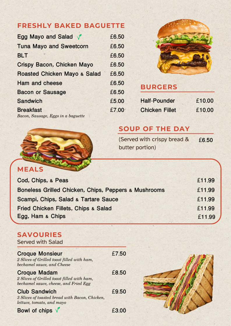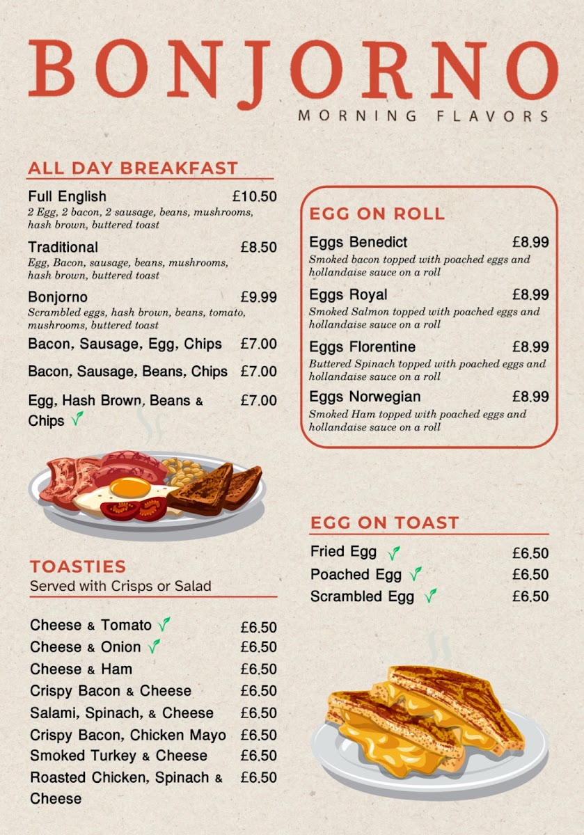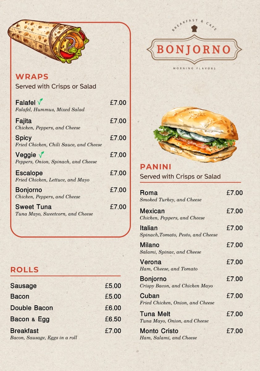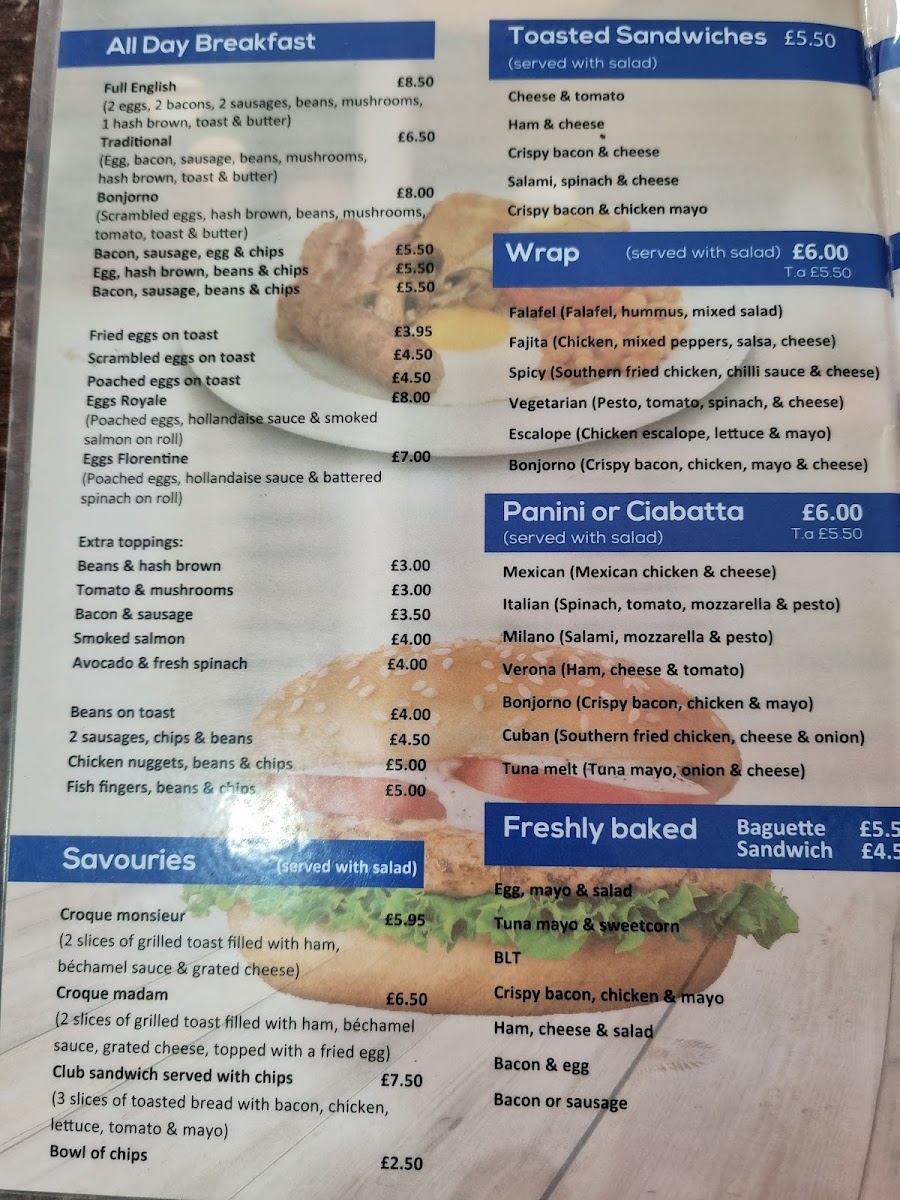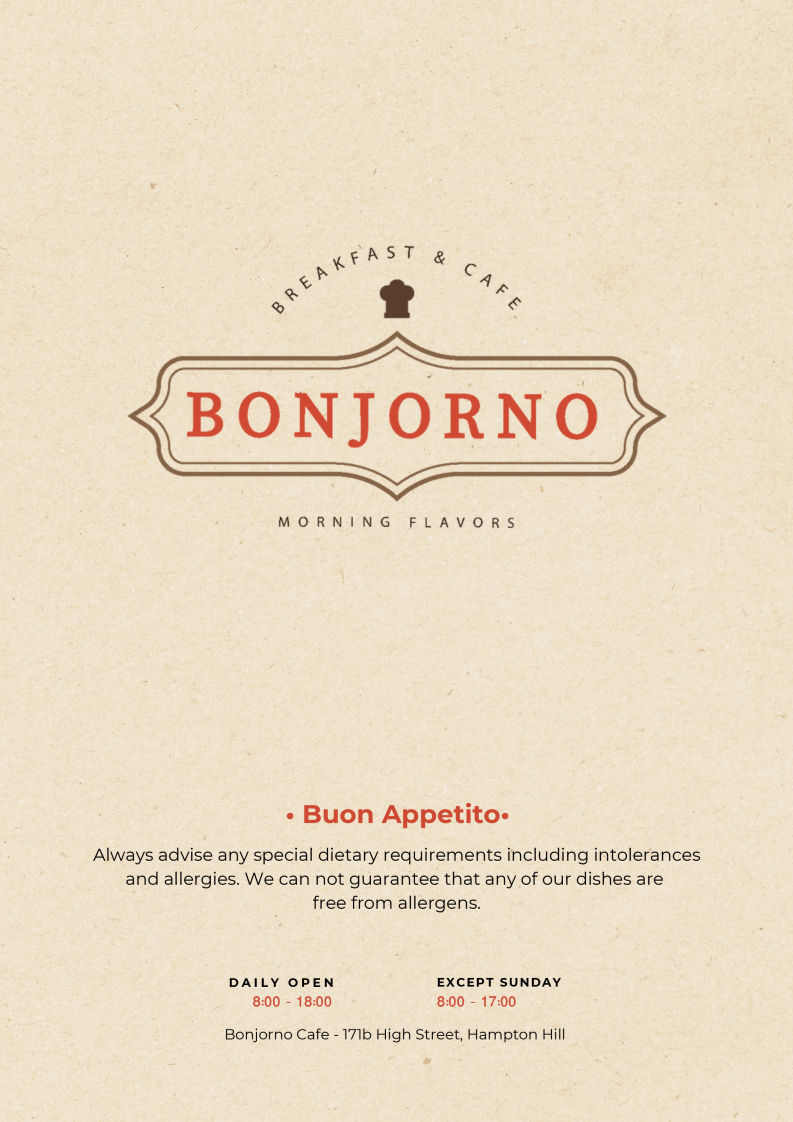If you find yourself in the charming area of Hampton Hill, make sure to drop by for a delightful experience at Cafe Bonjourno Menu. Nestled in the cozy White Dove Court on High Street, this cafe offers a delightful mix of classic comfort food with a twist. Whether you're popping in for a quick coffee or settling down for a hearty lunch, the menu promises something for everyone. From freshly baked pastries and crisp salads to perfectly grilled sandwiches and seasonal specials, every dish is crafted with care. It's the kind of place where you'll feel at home, whether you're catching up with friends or enjoying a peaceful moment alone. Don’t forget to try their signature coffee blends that pair perfectly with whatever you choose from the tempting selection. Conveniently located at 171B High St, Hampton Hill, you’re sure to find yourself coming back for more.